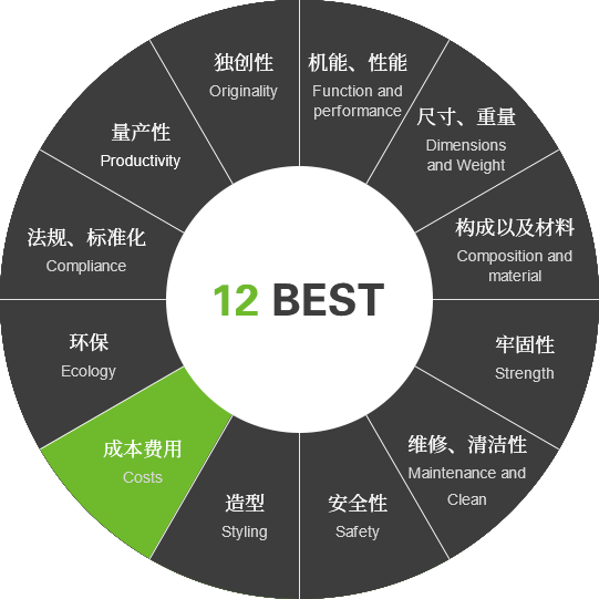 產量 法規 環保 成本 造型 安全性 維修 牢固 構成 尺寸 機能 獨創